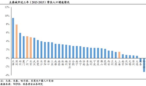 近几年,一二线城市人口净流入,除深圳等少数城市外,普遍明显放缓甚至停止增长。城镇化人口流入历史任务可能将主要由三四线城市承担。