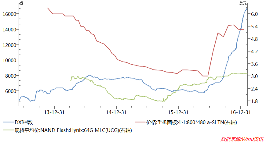 上游(内存、面板和铜箔、覆铜板等)在日本地震、环保、新旧技术工艺产能切换、重组转移以及盈利下滑带来原有供给收缩(如面板、LED)与电动汽车分食需求(如铜箔)等背景下,自2016年下半年以来持续加速涨价。